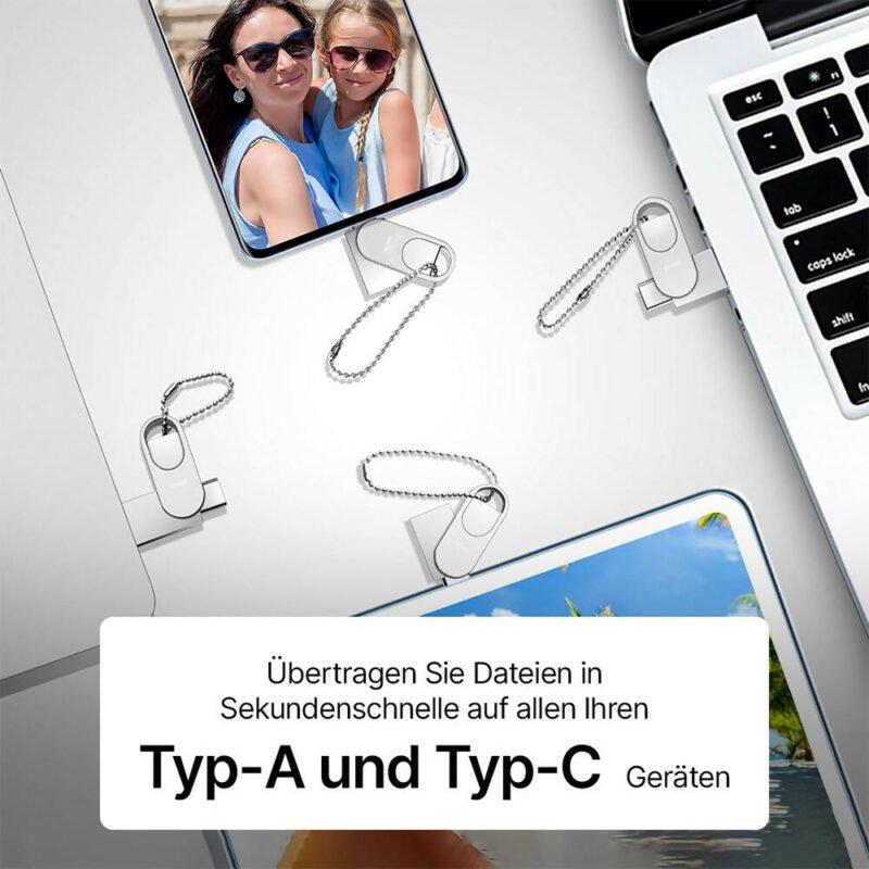 USB Stick 64GB / USB C & USB 2.0 / 2-in-1 OTG Speicherstick / Mini Metall Memory Stick / Schlüsselanhänger / Silber