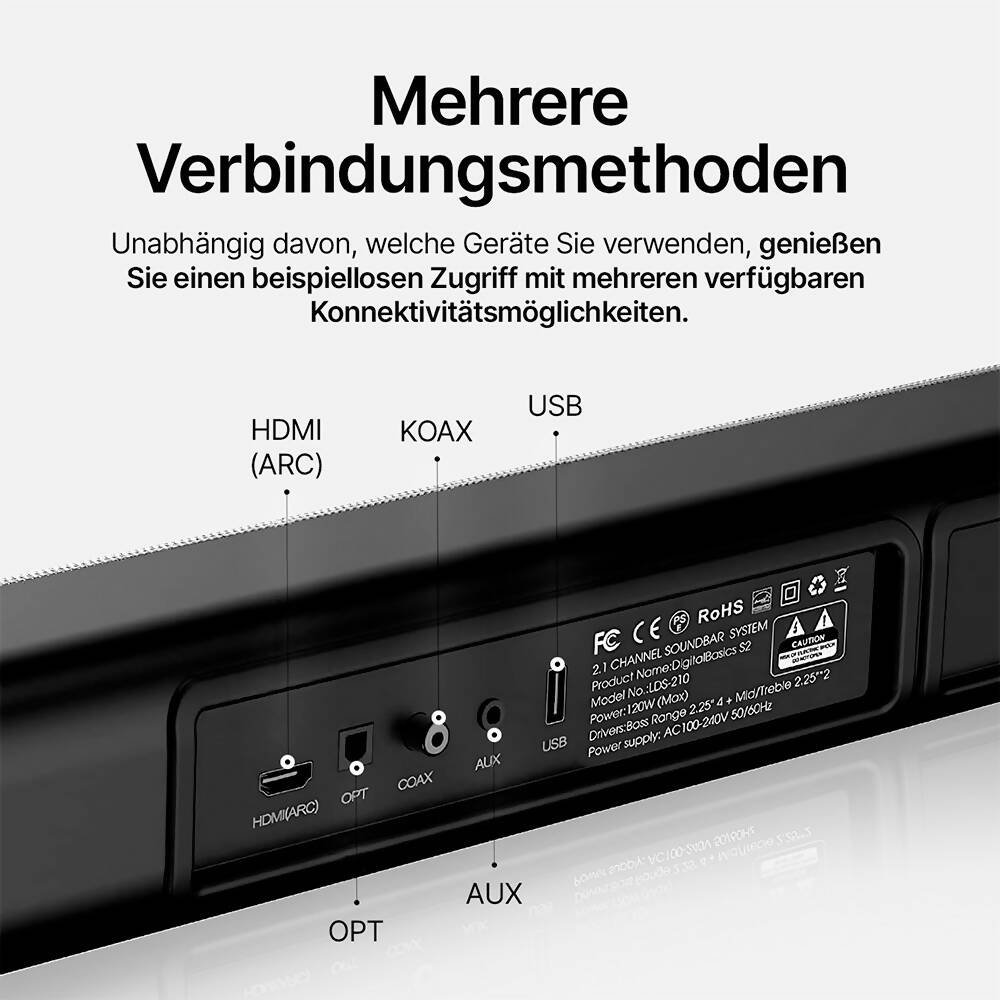 Soundbar Pro S2 für TV, PC, Laptop & Home Cinema / Elegante Bluetooth Soundbar mit Subwoofer-Surround-Sound / HDMI