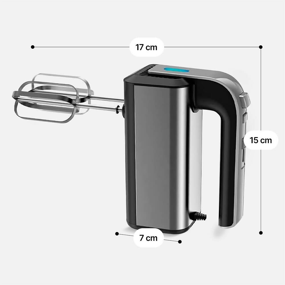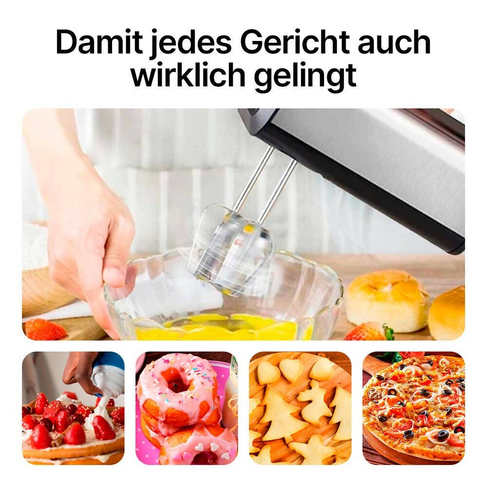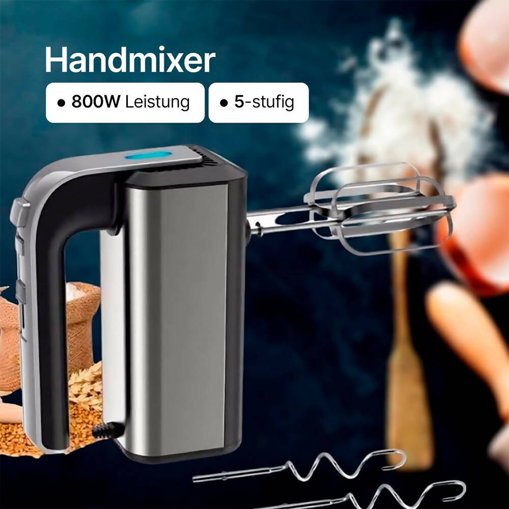Handmixer mit 800W Power / 5 Geschwindigkeiten / Robuster Edelstahl / Spülmaschinenfest / Stilvoll & Komfortabel / Mit Eject- und Turbotaste / Inkl. 2 Knethaken & 2 Rührbesen