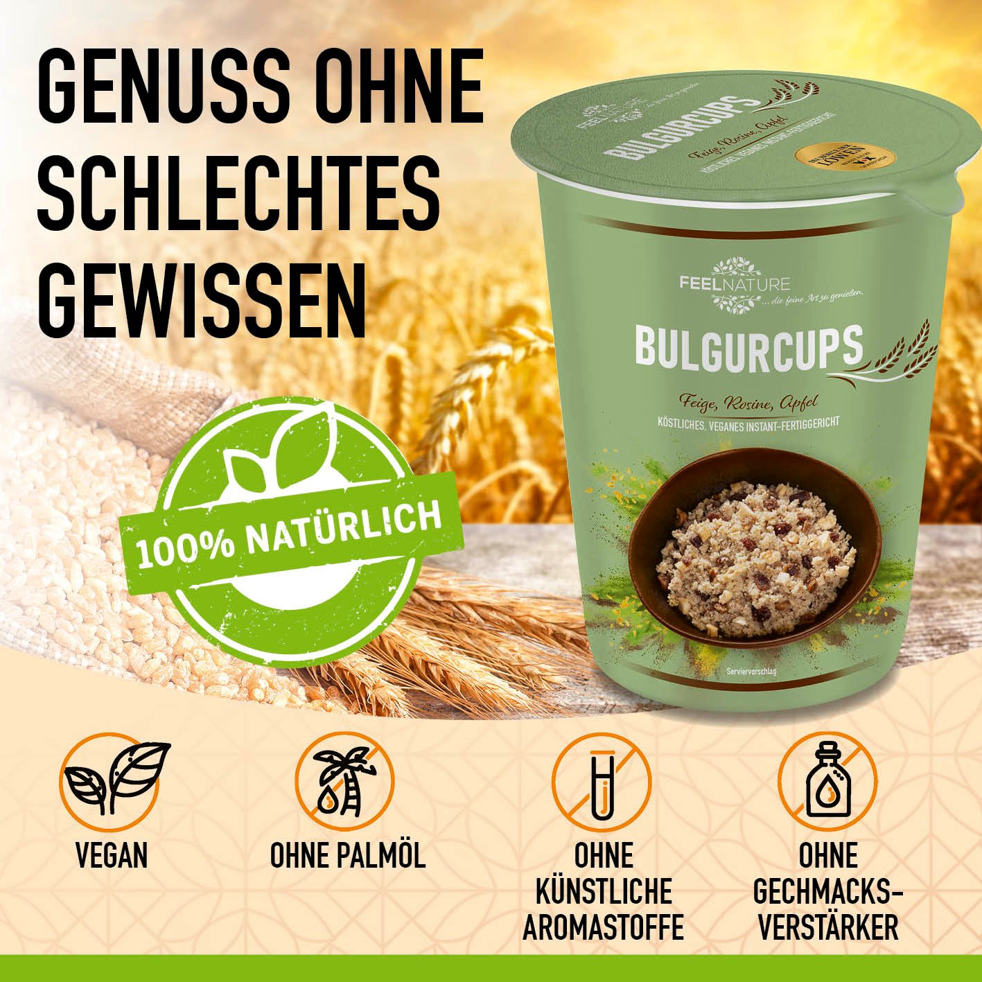 - EINZIGARTIG & LECKER – Genieße das leckere Gemüse der FEEL NATURE Bulgur Cups in der Kisir Variante. Sie vereint die würzige Frische von Tomaten. Granatapfel und Petersilie mit dem nussigen Bulgur. Diese einzigartige 5 min Terrine ist von den Aromen des Nahen Ostens inspiriert und liefert eine vollmundige. herzhafte Geschmacksexplosion.