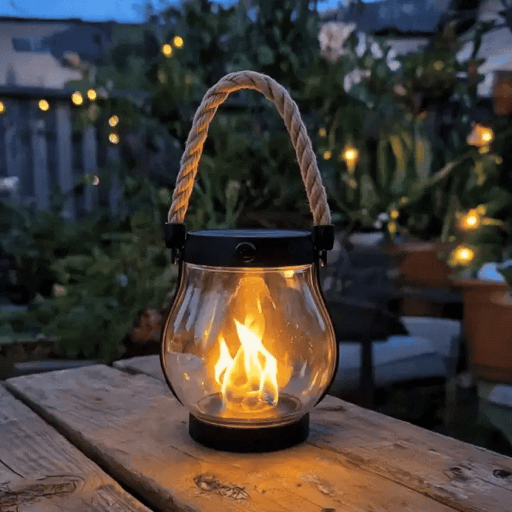 🌟This solar-powered lantern creates a realistic flickering flame effect, bringing a warm, cozy glow to your space—no heat, no smoke, no hazards. Perfect for use at dinner tables, on patios, or along garden paths. It’s not fire, but your eye won’t know the difference.