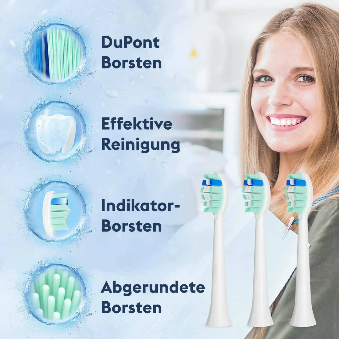 Ersatzbürsten für elektrische Zahnbürste, 3 Stück, Weiche und abgerundete Borsten, Passend für alle Snapbuy Zahnbürsten
