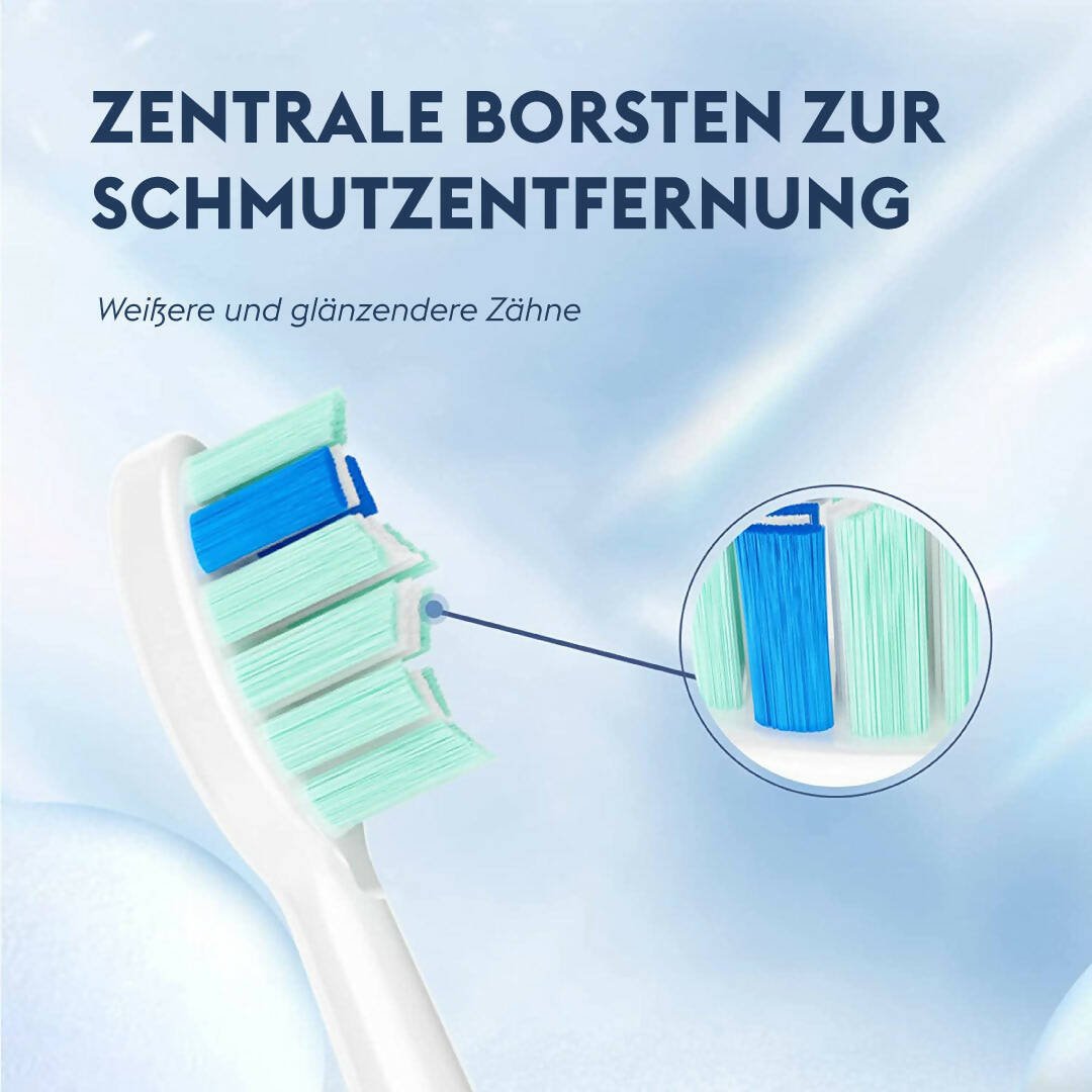 - ✓ Farbige Borsten: Die farbigen Borsten zeigen Ihnen. wann der Putzkopf ausgewechselt werden muss. Verblasst das Blau. ist es Zeit für eine neue Ersatzbürste.