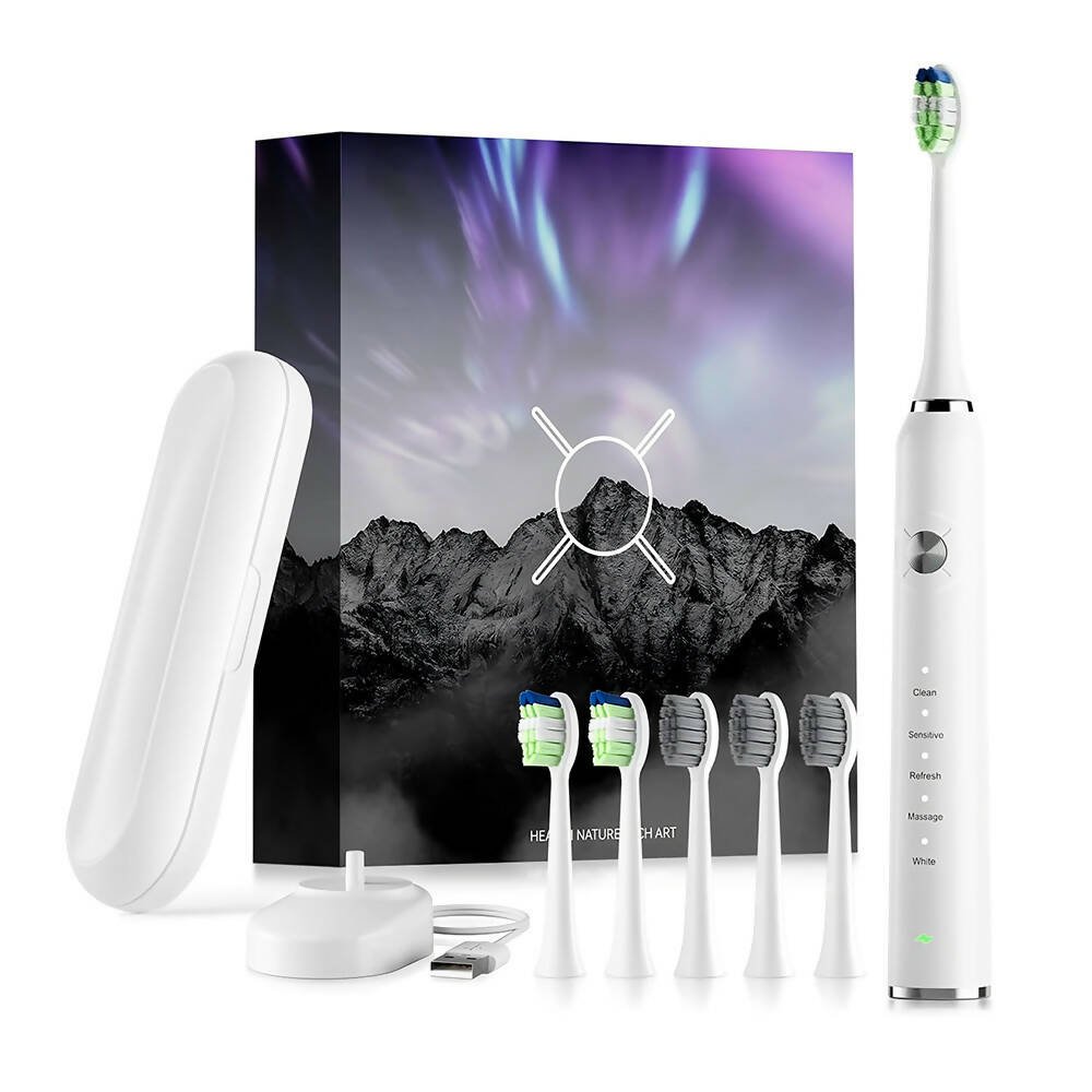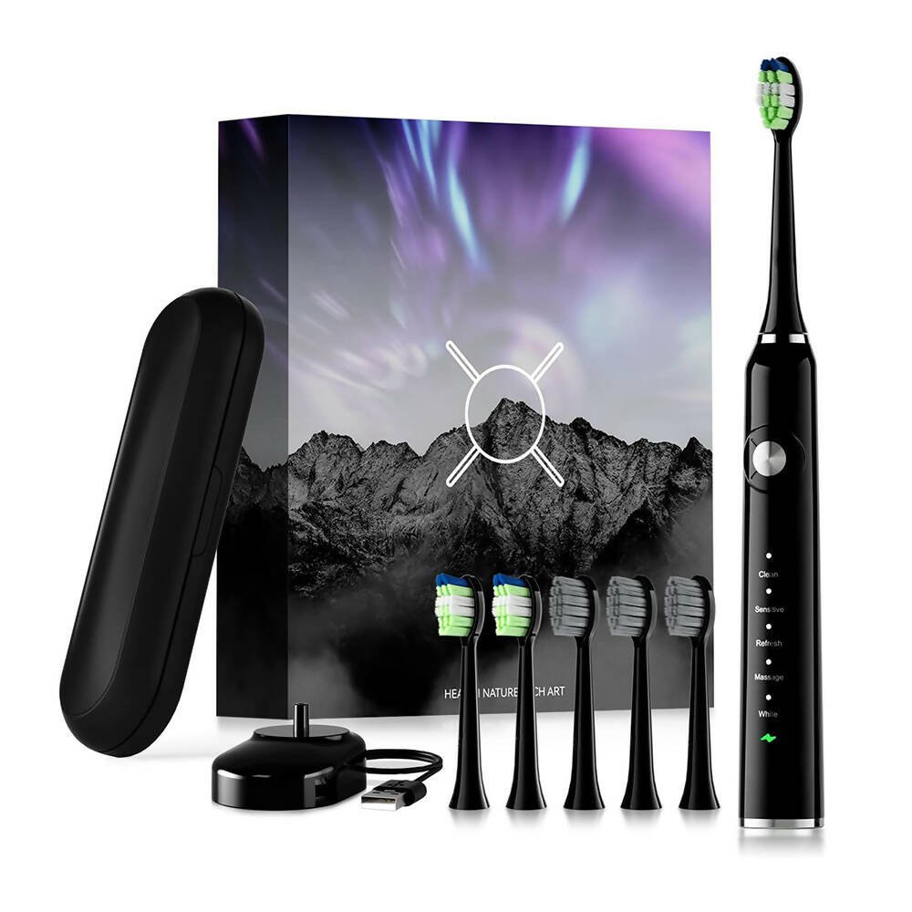 Elektrische Zahnbürste Pro / Schallzahnbürste / USB-Aufladbar / Wasserfest / 5 Programme / 6 Bürstenaufsätze / Mit Schutzhülle