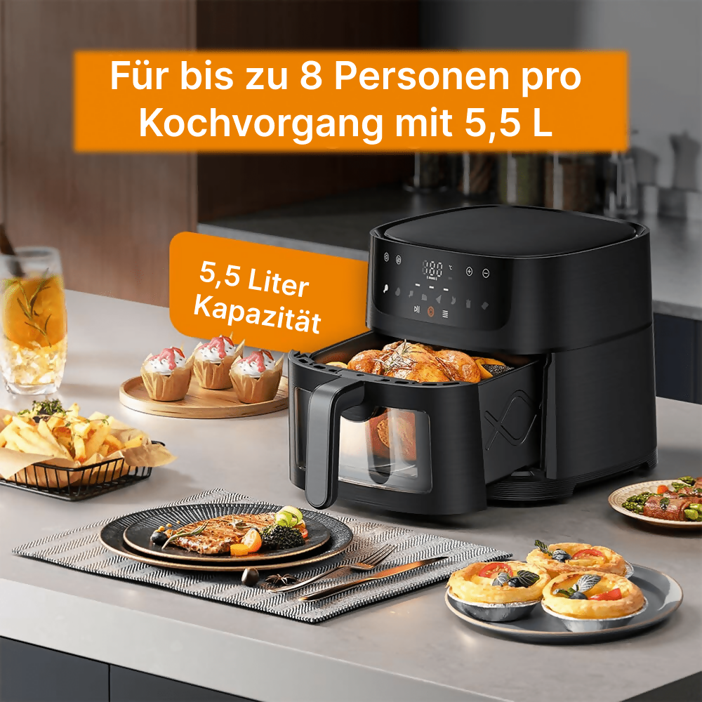 Heißluftfritteuse mit 5,5 Liter Kapazität und digitalem LED-Touchscreen